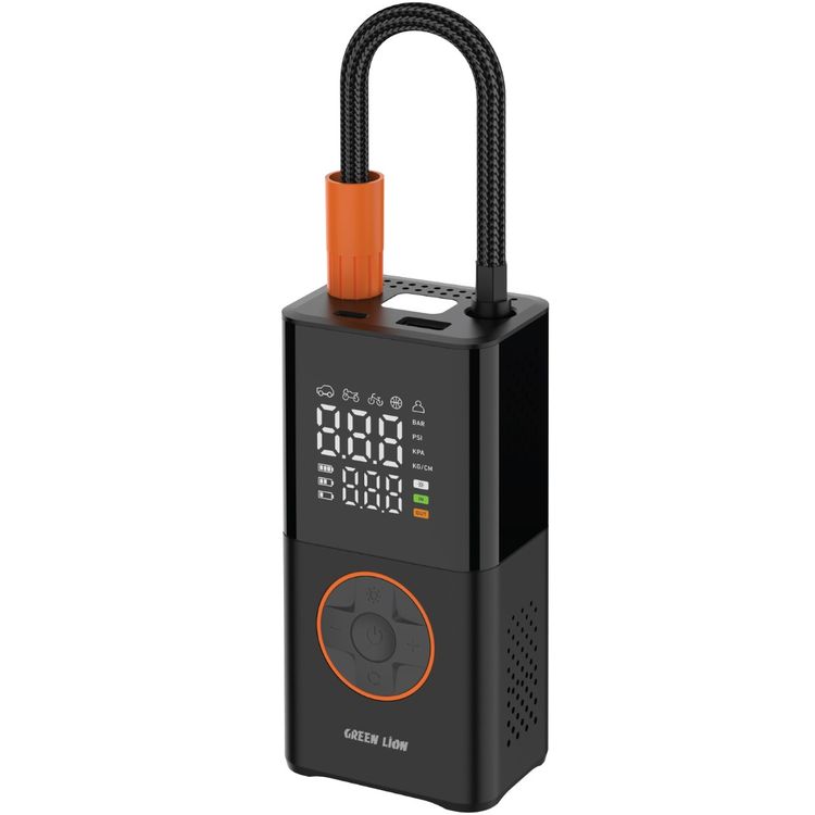 Green Lion GTI-01 Inflator Portable Air Compressor, Multiple Nozzles, LED Flashlight, Dual LCD Screen, 18 L/min Inflation Speed, 8 Minutes Inflation Time - Black