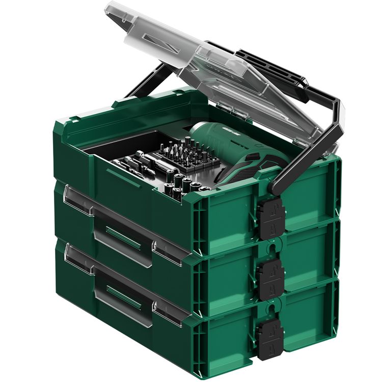 Green Lion GTS-700 Tool Kit Set with 213 Pieces, LED Working Light, 250 RPM No-Load Speed, Forward/Reverse Control, Adjustable Handle, Magnetic CR-V Bits, Stacking Storage Box, 90° Adjustable Handle, 1/4" Hex Chuck Quick-Release, Cordless Screwdriver & Tool Kit - Green