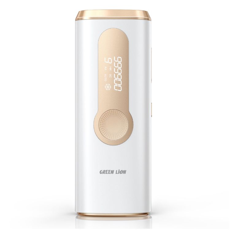 Green Lion Hair Removal Laser 3-in-1 Function with Over 999,900 Flashes, Digital Display, Safety Sensor, 5-35°C Temperature, DC Connector Port, 36W Power - White