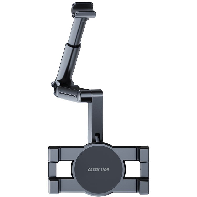 Green Lion Headrest Mount for Tablets & Phones with 360° Rotation, Compatible with 4.7"–12.9" Devices, 3-Axis Adjustment, Foldable Design, Secure & Stable, Quick Installation, Universal Pole Fit, Anti-Slip Grip, Charging Access, Multi-Angle Viewing, 1kg Load Capacity - Black