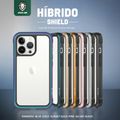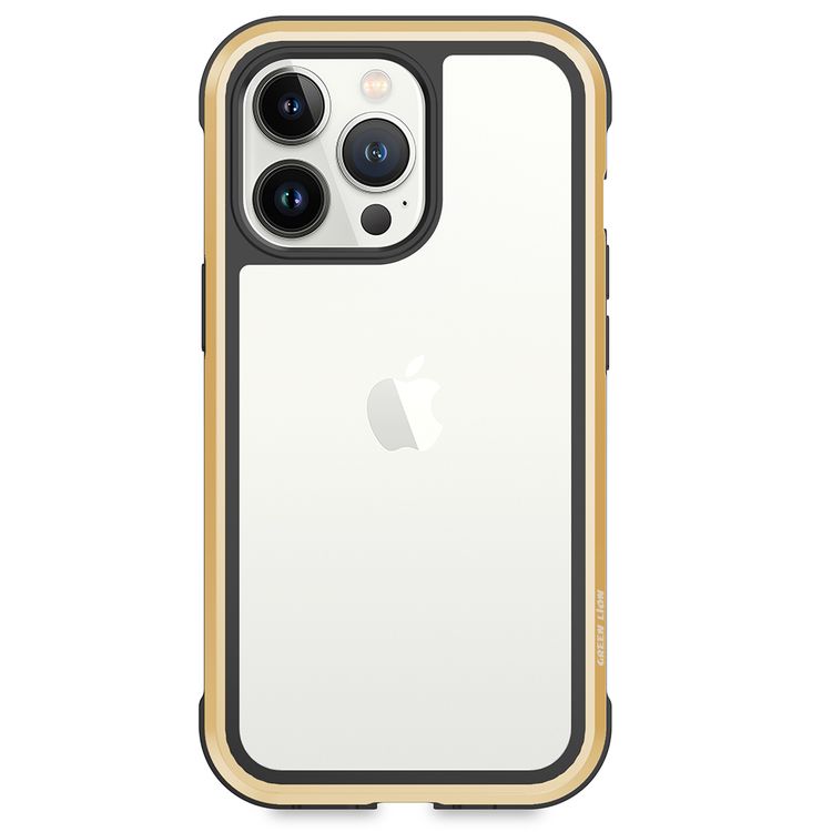 Green Lion Hibrido Shield Case with Protective Aluminum Bumper for iPhone 13 Pro, 360° Protection, Shock Absorption, Anti-Fingerprint, Raised Lip Design, Anti-Yellowing - Gold