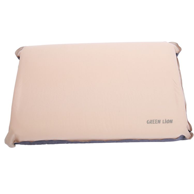 Green Lion Inflatable Camping Pillow with Cushioned Foam Layer, Soft & Skin-Friendly, 5-Layer Construction, Ergonomic Neck Support, 10s Quick Self-Inflating, Carry Bag Included, Cushioned Foam Layer - Beige