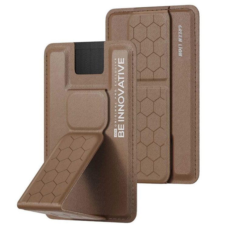 Green Lion Innovative MagSafe Wallet with Built-in Kickstand, Leather Material, Magnetic Fold Down, Snap-On Design, Maximum Two-Card Capacity - Brown