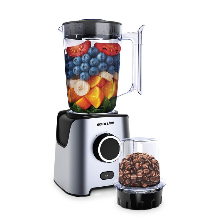 Green Lion Jet Blend Pro Juice Blender with Grinder, 650W Peak Power, 1.8L Capacity, 2 Speed Levels, 6-Leef Blade, 19000RPM Motor, Control Dial - Gray