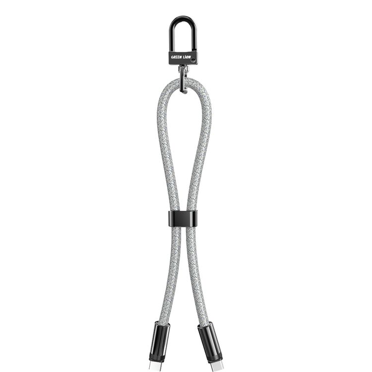 Green Lion Keychain Lanyard USB-C to USB-C, 30 cm, 20V/3A, 60W, 480Mbps Data Transfer Rate, 10000 Bends Lifetime, Braided, Zinc Alloy Shell & Aluminum Alloy Buckle - Gray