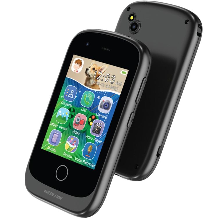 Green Lion Kids Smartphone with Dual Camera, 2.8" IPS Screen, 240×320p Photo Resolution, 600mAh Battery Capacity, 2G Calls, Habit Tracker, Class Mode - Black