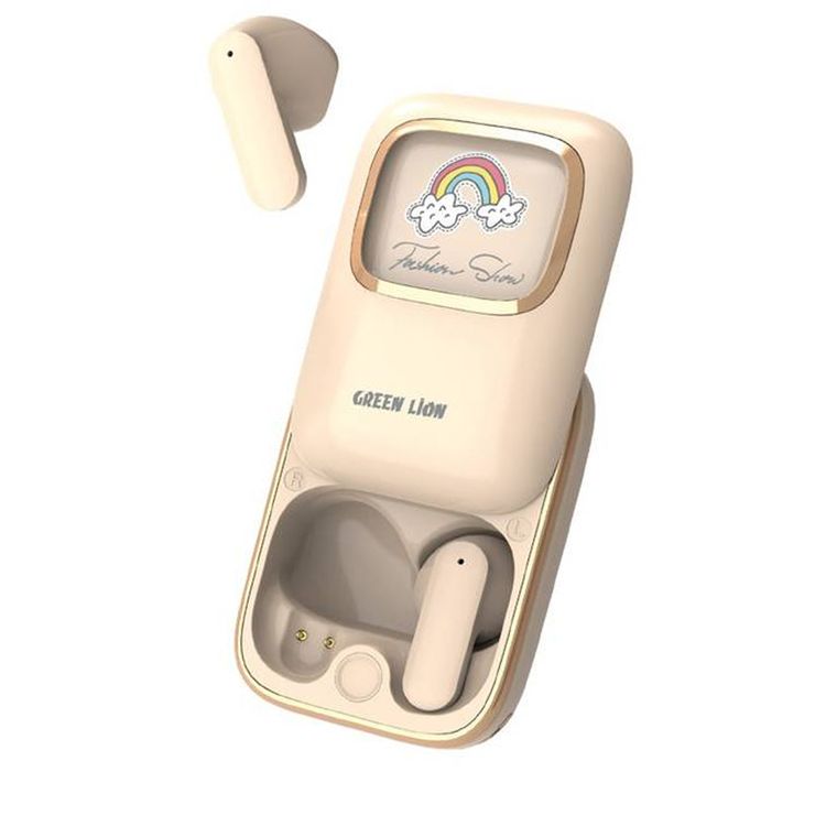 Green Lion Kidz Klips Earbuds with 13mm Driver Size, 5 Hours Working Time, Bluetooth Version 5.3, Type-C Charging Port, Light Indicator, Kid Friendly, Lightweight - Beige