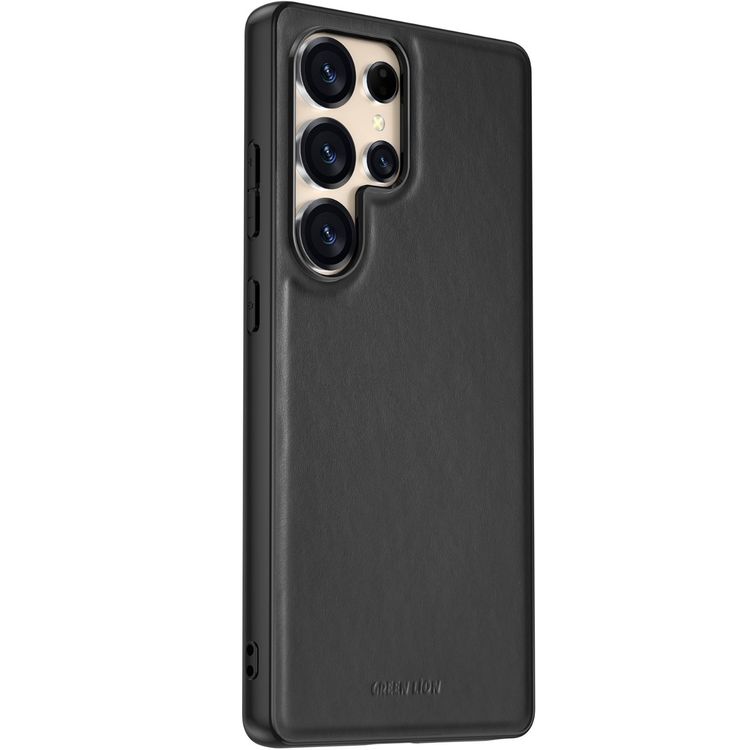 Green Lion Leather Case Samsung Galaxy S25 Ultra, TPU Shockproof Edges, Drop Protection, Comfort Grip, Camera Protection, Precise Cutouts, Anti-Scratch - Black