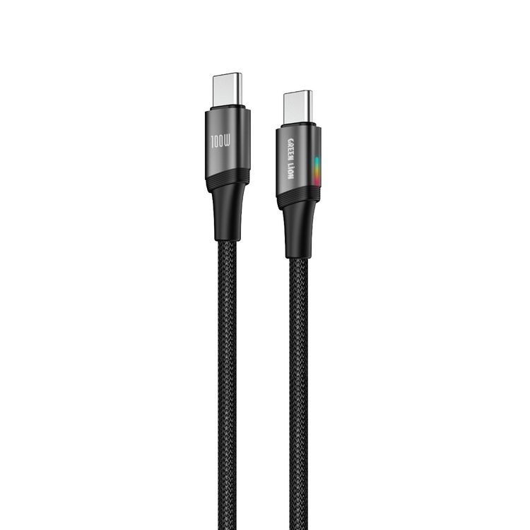 Green Lion Lumi USB-C to USB Charging Cable with 1m Cable Length, Braided Cable, 100W Power Delivery, RGB Charging Indicator, Charge & Sync - Black