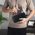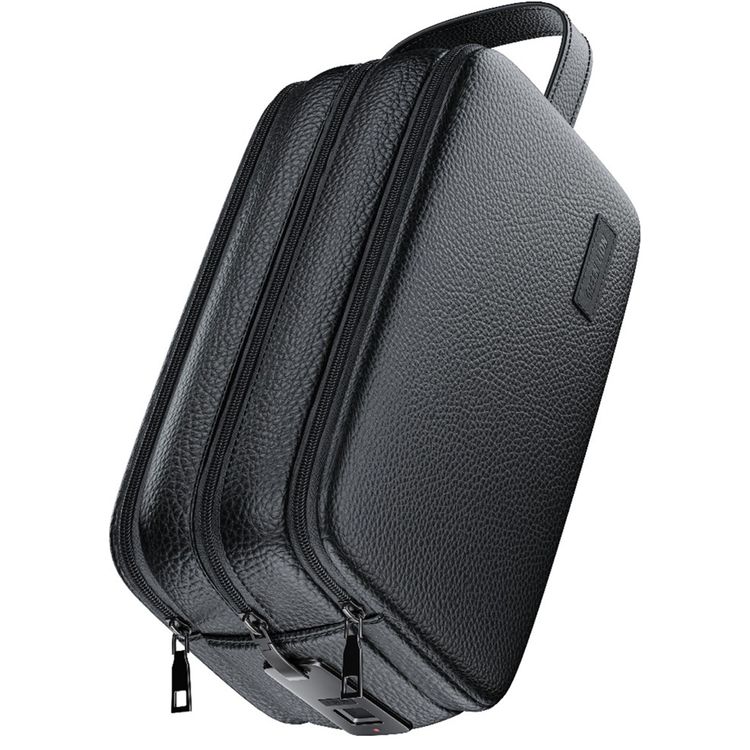 Green Lion Lyon Plus Fingerprint Bag with Leather Strip & LED Indicator, 120mAh Battery Capacity, 10 Fingerprint Capacity, Water Resistant, 6 Months Standby Time, Multiple Pockets, Capacitive Sensor, Durable Zippers - Black