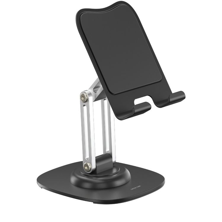 Green Lion M4-Foldable Phone & Tablet Holder, Up to 300g Load Capacity, 360° Rotation, Compatible with 4-12.9" Devices, Non-Slip Silicone Pad, Strong Metal Base, Triaxial & Foldable Design - Black