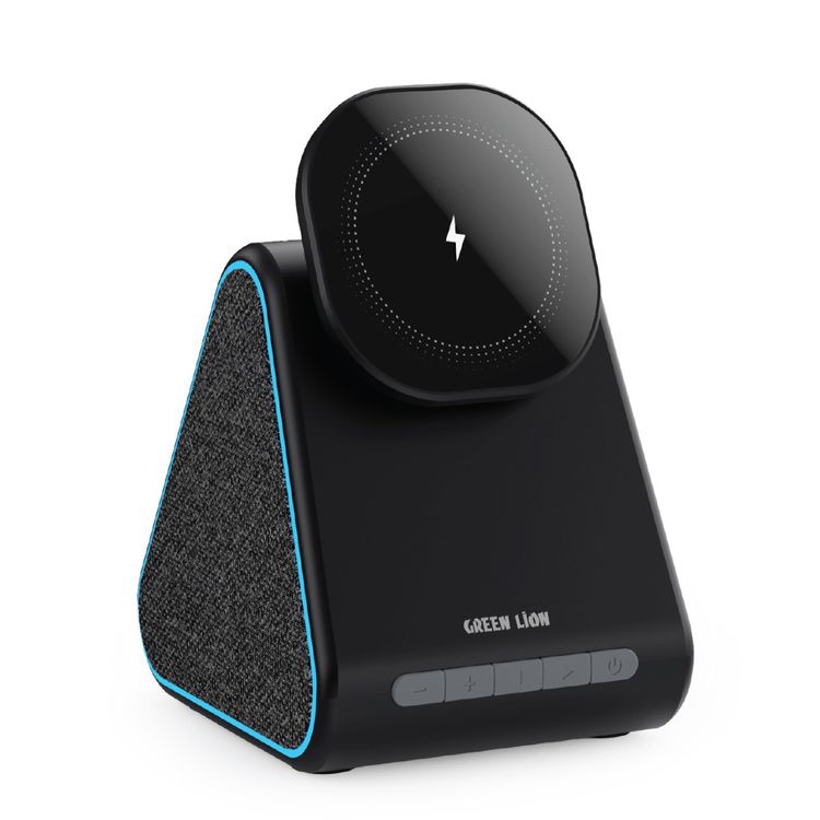 Green Lion Mag Trio Speaker, Charger, Phone Stand, LED Blue Light, 5hours Working Time, 1000mAh Battery - Black