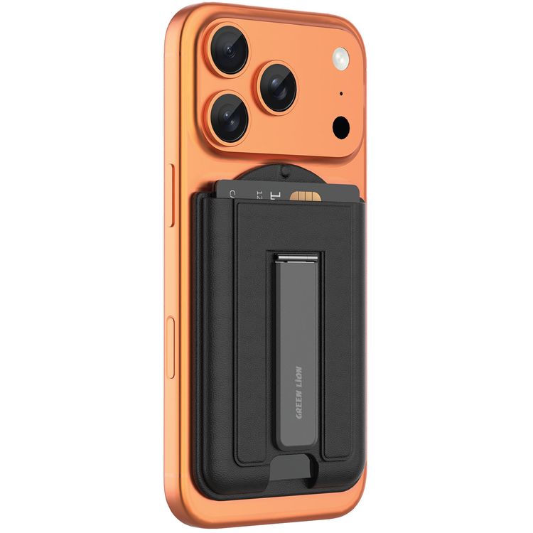 Green Lion Mag Wallet Kickstand Card Holder with 2-Card Storage, Ultra-Slim Profile, Aluminum Alloy, 2-in-1 Design, 21× Strong N52 Magnets, Instant Card Access, MagSafe Compatibility, Multi-View Kickstand - Black