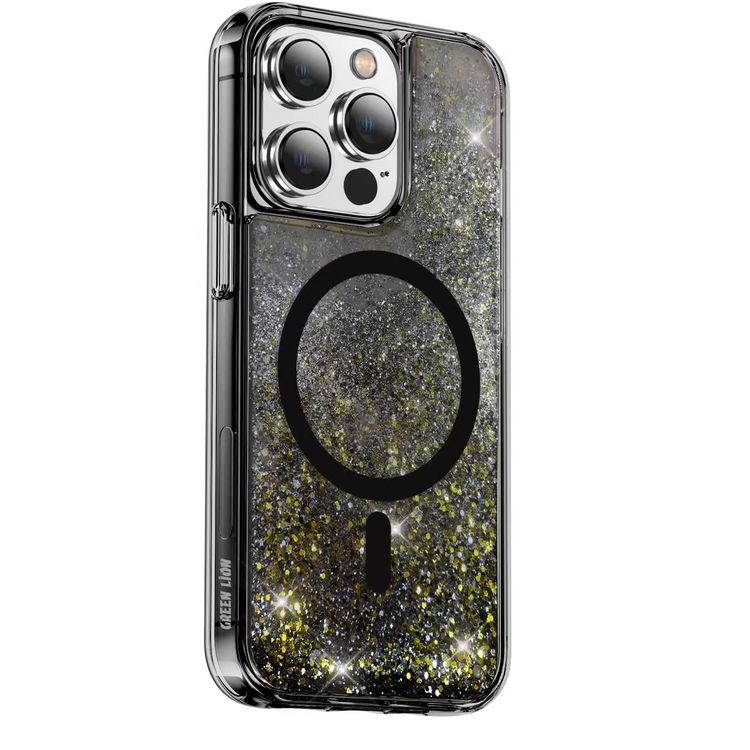 Green Lion Magnetic Happiness 3D Glitter Resin Case for iPhone 14 - Black