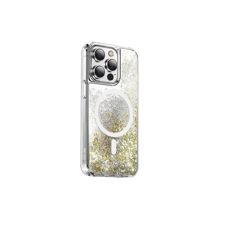 Green Lion Magnetic Happiness 3D Glitter Resin Case for iPhone 14 Plus - Silver