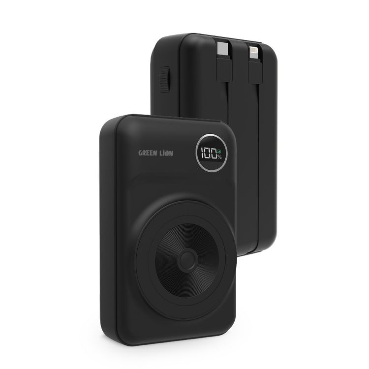 Green Lion MagSafe Integrated Power Bank with 20000mAh Battery Capacity, PD 20W, Type-C & Lightning Cables, 15W MagSafe Fast Charging, Digital Display - Black