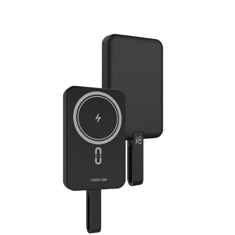 Green Lion MagSafe Lite Power Bank 10000mAh, Fast Charging PD 20W, Wireless Charging 15W, MagSafe Compatible - Black