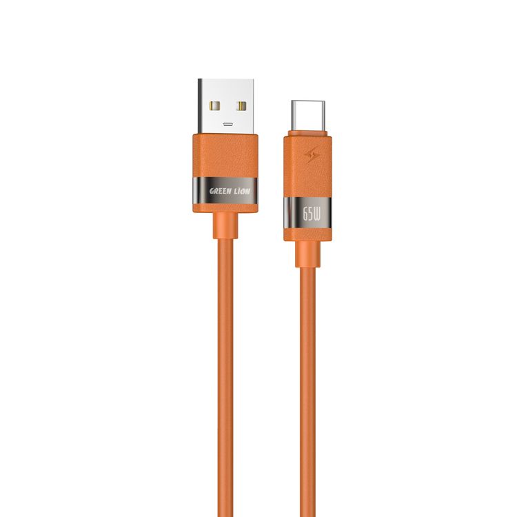 Green Lion Matte Silicone USB-A to USB-C Cable with 65W Charging Power, USB 2.0 480 Mbps Data Transfer, Secure & Safe, Charge & Sync, Matte Silicone + Aluminum Alloy Material, 1m Cable Length - Orange