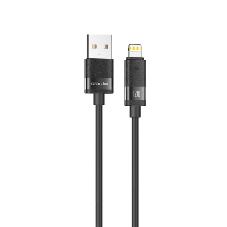 Green Lion Matte Silicone USB-A to Lightning Cable with 12W Charging Power, USB 2.0 480 Mbps Data Transfer, Secure & Safe, Charge & Sync, Matte Silicone + Aluminum Alloy Material, 1m Cable Length - Black