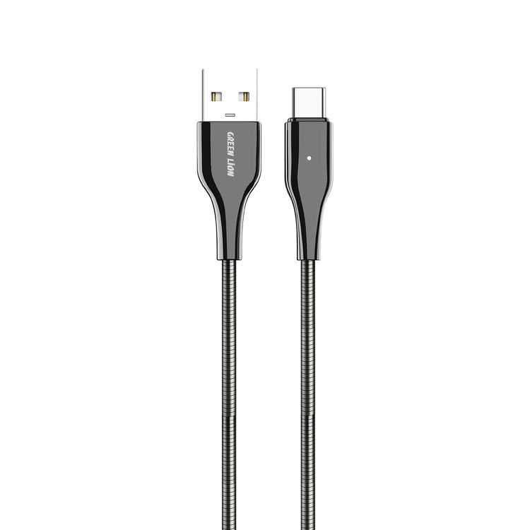 Green Lion Metal Spring Hose Cable USB-A to USB-C with 18W Power Delivery, 1m Cable Lenght, Metal Hose + Zinc Material - Silver