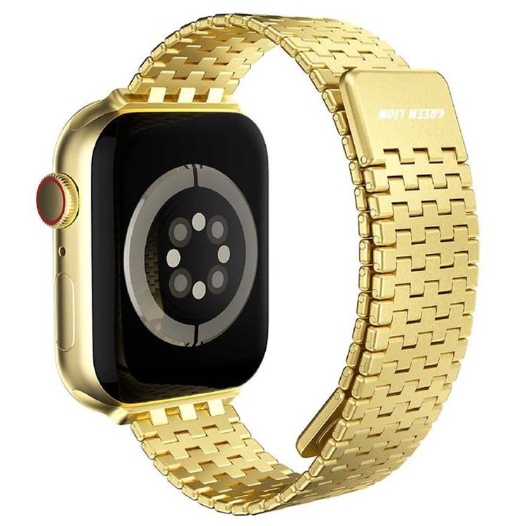 Green Lion Metallic Link Watch Band for Apple Watch Series 42/44/45/49mm with Adjustable Metallic Links, Sleek and Sophisticated, Double-button Folding Clasp, Suitable for Casual and Formal Occasions, Stainless Steel Material - Gold