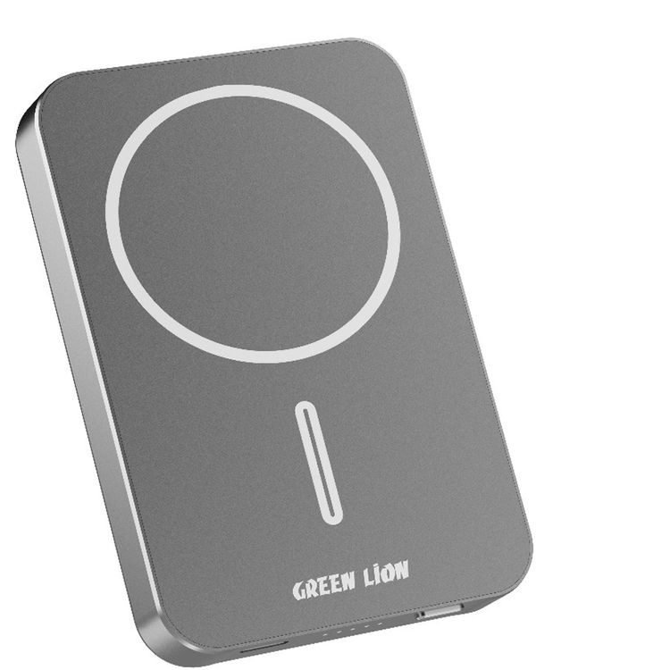 Green Lion Metz MagSafe Power Bank, 10000 mAh Battery Capacity, 20 W PD, Type-C Output, 15 W Wireless Charging, Type-C Input and Output, Foldable Stand - Gray