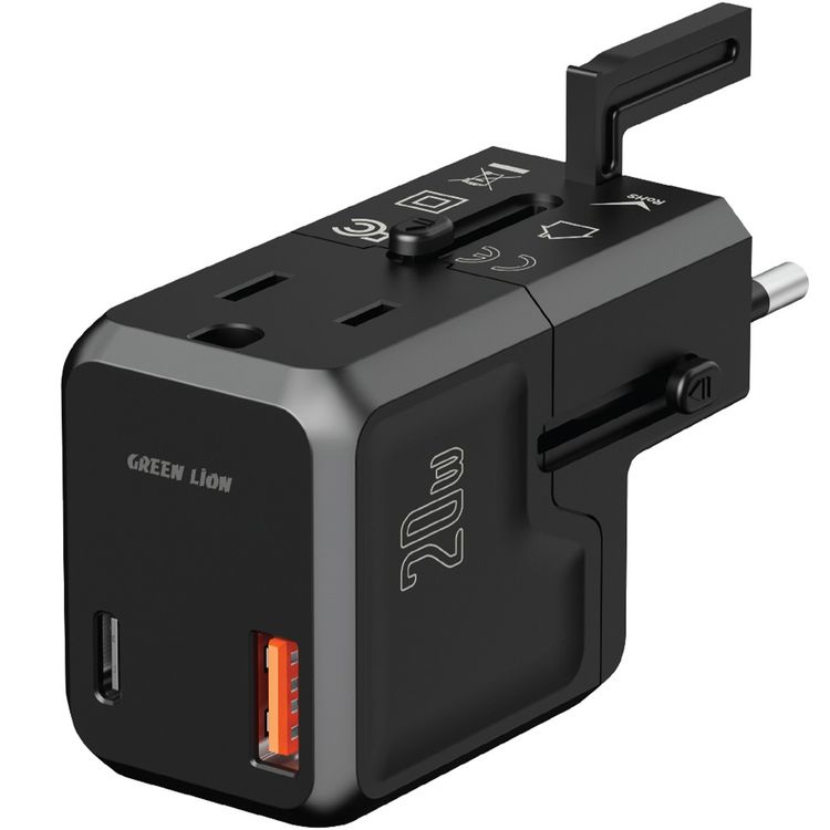 Green Lion Mini Portable Travel Adapter PD 20W Fast Charging with Overheat Protection, Short Circuit Protection - Black