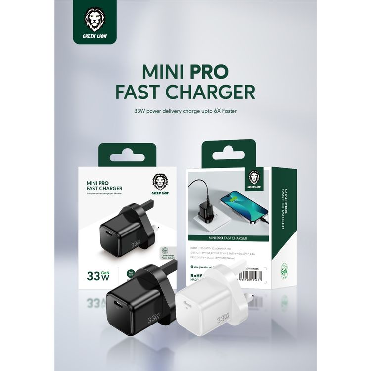 Green Lion Mini Pro Fast PD GaN Charger 33W UK - White