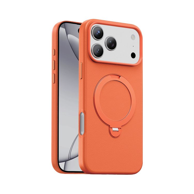 Green Lion Minster Leather MagSafe Case with Foldable Stand Design for iPhone 17 Pro Max, Anti-Fingerprint, 360° Rotatable Stand, Anti-Scratch, Camera Protection, Comfortable Grip - Orange