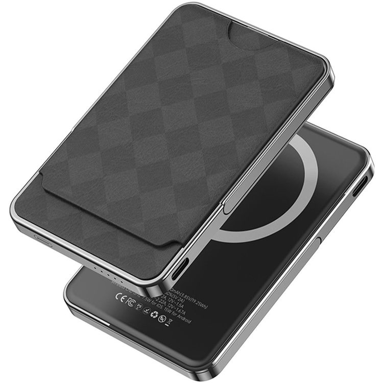 Green Lion Moreno 5000 mAh Power Bank, Built-in Card Holder, Ultra-Thin Design, Inflight Approved, Magsafe Compatible - Black