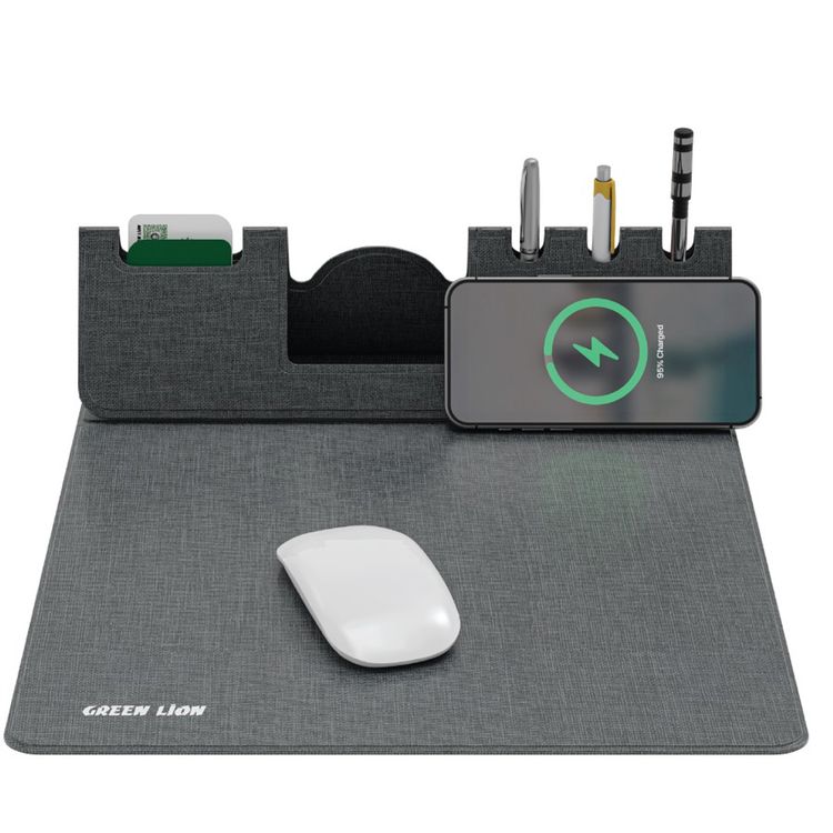 Green Lion Mouse Pad Wireless Charger, 15W, 3-8 mm Charging Distance, More than 70% Power Efficiency, Foldable - Gray