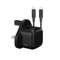 Green Lion NEXIO Single Port Wall Charger with UK Plug, 20W Power Delivery, Charging Protection, Flame Retardant PC Material, USB-C to Lightning Cable - Black