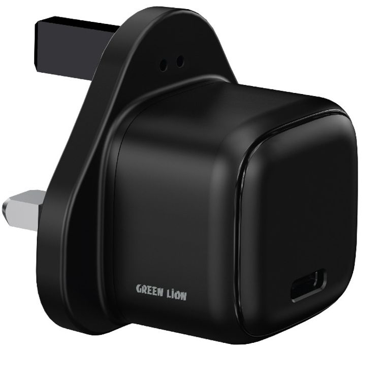Green Lion NEXIO Single Port Wall Charger with UK Plug, 20W Power Delivery, Charging Protection, Flame Retardant PC Material - Black
