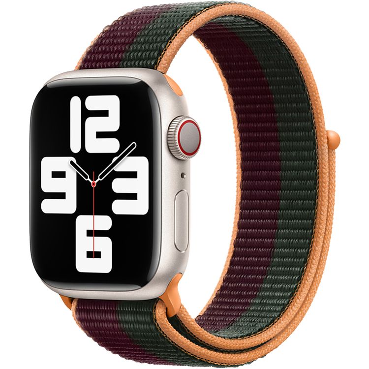 Green Lion Nylon Sport Loop Watch Strap for Apple Watch 44/45mm, Hook & Loop Fastener, Quick & Easy Adjustment, Comfortable Fit, Breathable & Lightweight - Cherry / Pine Green
