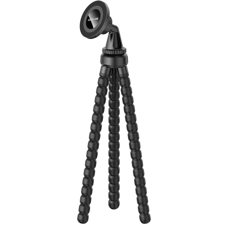 Green Lion Octoflex Mag Tripod Phone Holder with MagSafe Compatibility, High-Grade Aviation Alloy, 16 × N52 Ultra-Strong Magnets, Solid Rod Arm, Rotary Lock Knob, TPE Rubber Outer Layer, 33.5cm Max Height, Travel Friendly, Magnetic Ring Included, Flexible Tripod Legs - Black
