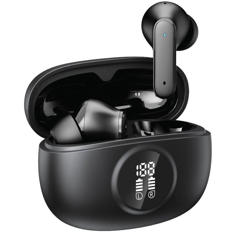 Green Lion Orlando True Wireless Earbuds with Digital Display, HiFi Sound, Built-in Microphone, Voice Assistant, 4.5 Hours Playtime, Type-C Charging - Black