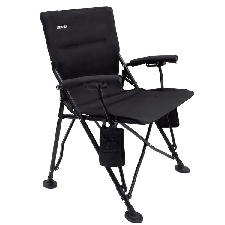 Green Lion Outdoor Camping Chair with Carrying Bag, 150kg Load Capacity, Bottle Holding Pocket, Camping Friendly, Non-Slip Feet, Easy to Carry - Black