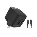 Green Lion PD 20W UK Wall Charger with USB-C to USB-C Cable, Charging Protection, 60W Cable Current, 5V/3A (15W) USB-A & USB-C Output Shared Output, Fast Charging - Black