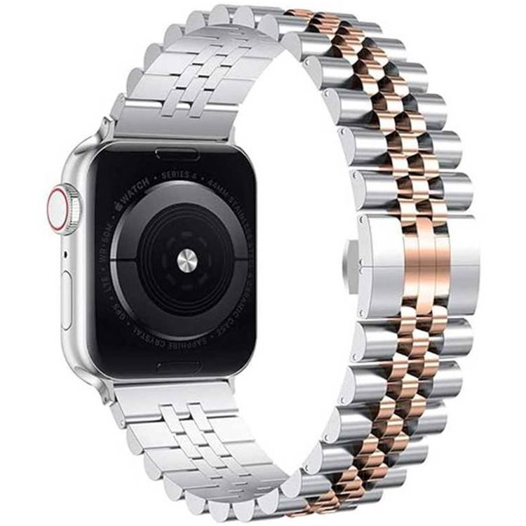 Green Lion Picolla Stainless Steel Watch Band for Apple Watch Series 42/44/45/49mm with Adjustable Metallic Links, Both Casual and Formal Occasions, Secure Clasp, Premium Stainless Steel, Sleek and Sophisticated - Rose Gold/Silver