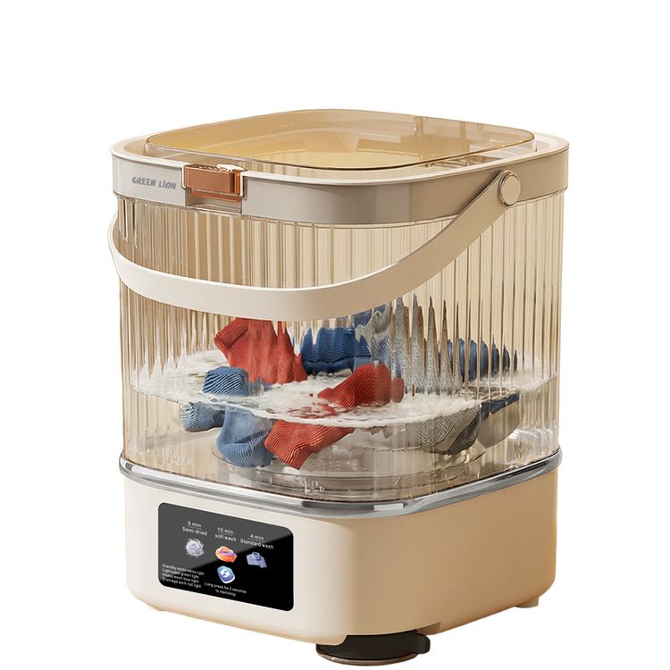 Green Lion Portable Mini Washing Machine with 12L Washing Capacity, Transparent Wash Bucket, Delicate Fabric Care, One-Button Open, Portable Carry Handle, Anti-Slip Base, Detachable Drain Basket, Fast Wash Cycles, Energy-Efficient Power, Multi-Scene Use, Clear Status Display - White
