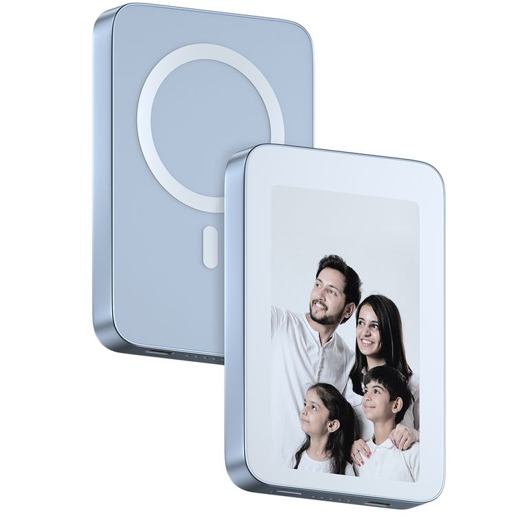 Green Lion Power Frame 5000mAh Power Bank with 4 Color E-Ink Display, Bluetooth Version 5.0, Fast Charge Support, 20W Power Delivery, Aluminum Alloy & AG Glass Material - Blue