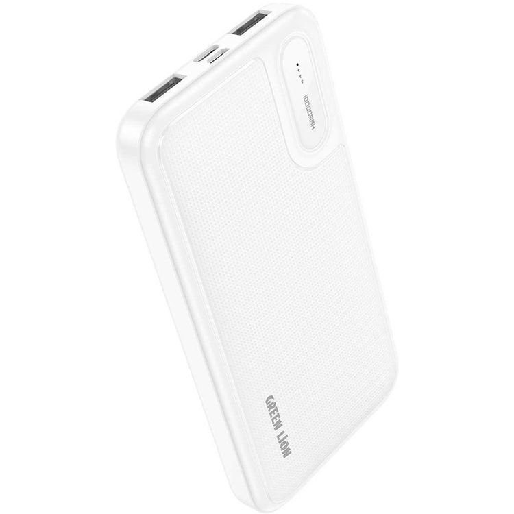 Green Lion Power Mate 10000mAh Power Bank with ×2 USB-A Output Ports, Micro & Type-C Input Ports, ABS+PC Material, Multi Protection, LED Light - White