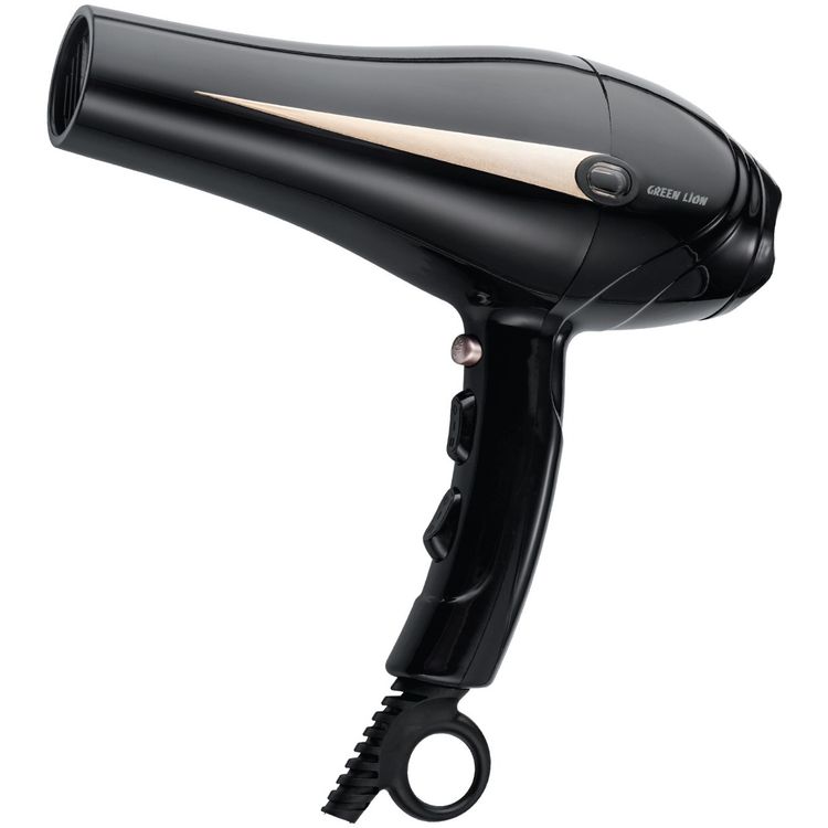 Green Lion Professional Hair Dryer, 2000W Rated Power, 28-69°C Temperature, Precision Concentrator, Removable Air Inlet - Black