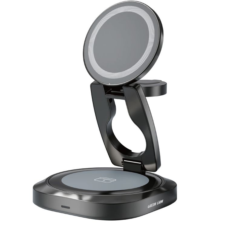Green Lion Qi 2.2 MagFlex 3-in-1 Wireless Charger, 5W Watch, 5W Earbuds, 25W Phone Wireless Output, Non-Slip Base Pad, LED Indicator, Foldable Design - Gray