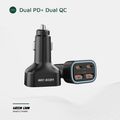 Green Lion Quad Port Car Charger with PD 35W, QC 3.0 35W, 2× USB-A & 2× USB-C Ports, PC Material, Compact Design, Charging Protection, Fast Charge Support - Black