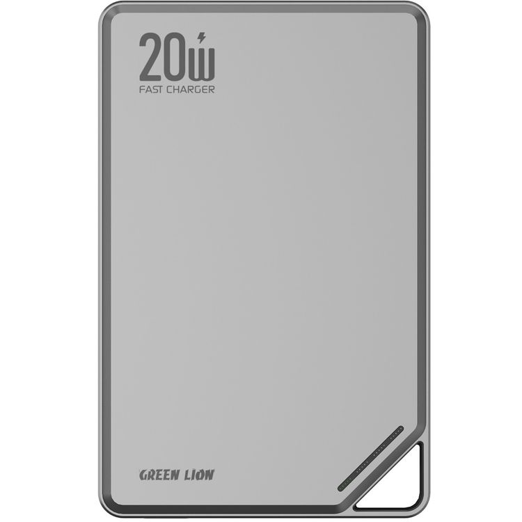 Green Lion Rayo 10000mAh Power Bank with PD 20W Fast Charging, 15W Wireless Output, Ultra-Slim Design, LED Power Indicator, Flight Approved, Strong Magnetic, Safety Protections - Gray