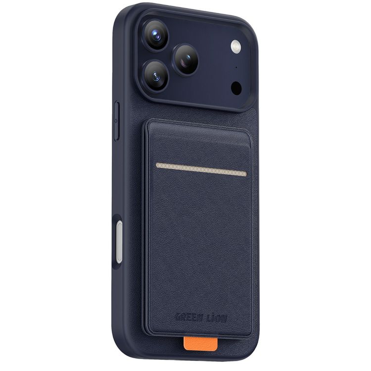 Green Lion Regal MagSafe Leather Case with Card Holder for iPhone 17 Pro Max, Anti-Fingerprint, Foldable Stand, Camera Protection, Comfortable Grip, Anti-Scratch, Shock Absorption - Blue