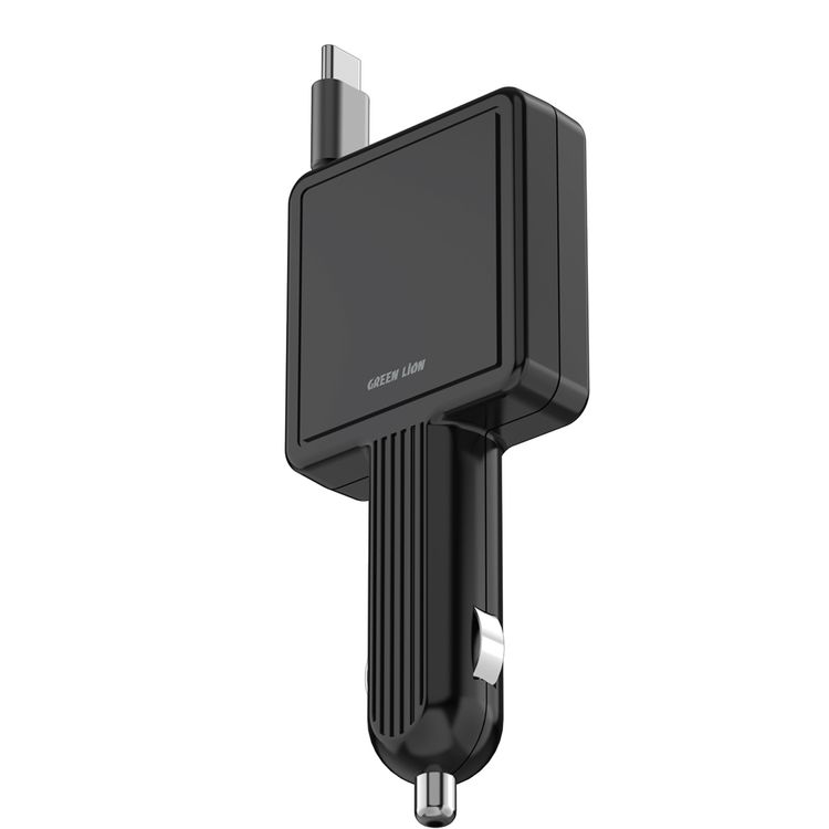Green Lion Retractable 30W Car Charger, Telescopic Charging cable, Fast Charging, Built-in Fuse Cable - Black