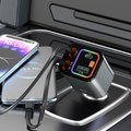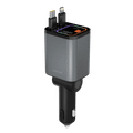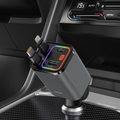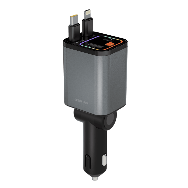 Green Lion Retractable 65W Car Charger with Simultaneous Charging, Built-in Safeguards, Multi-Color Ambient Lighting, Swivel Charging Port, Tangle-Free Retractable Cable, 80cm Built-in Cable, USB-A & USB-C Ports, ABS + PC + Aluminum Alloy Material - Gray
