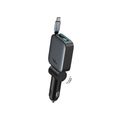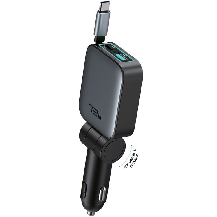 Green Lion Retractable 72W Car Charger with Soft Ambient LED, USB-A & USB-C Output Ports, Flexible & Adjustable, Safety Protection, PD 45W, 80cm Retractable USB-C Cable, ABS + Flame Retardant PC Material - Gray
